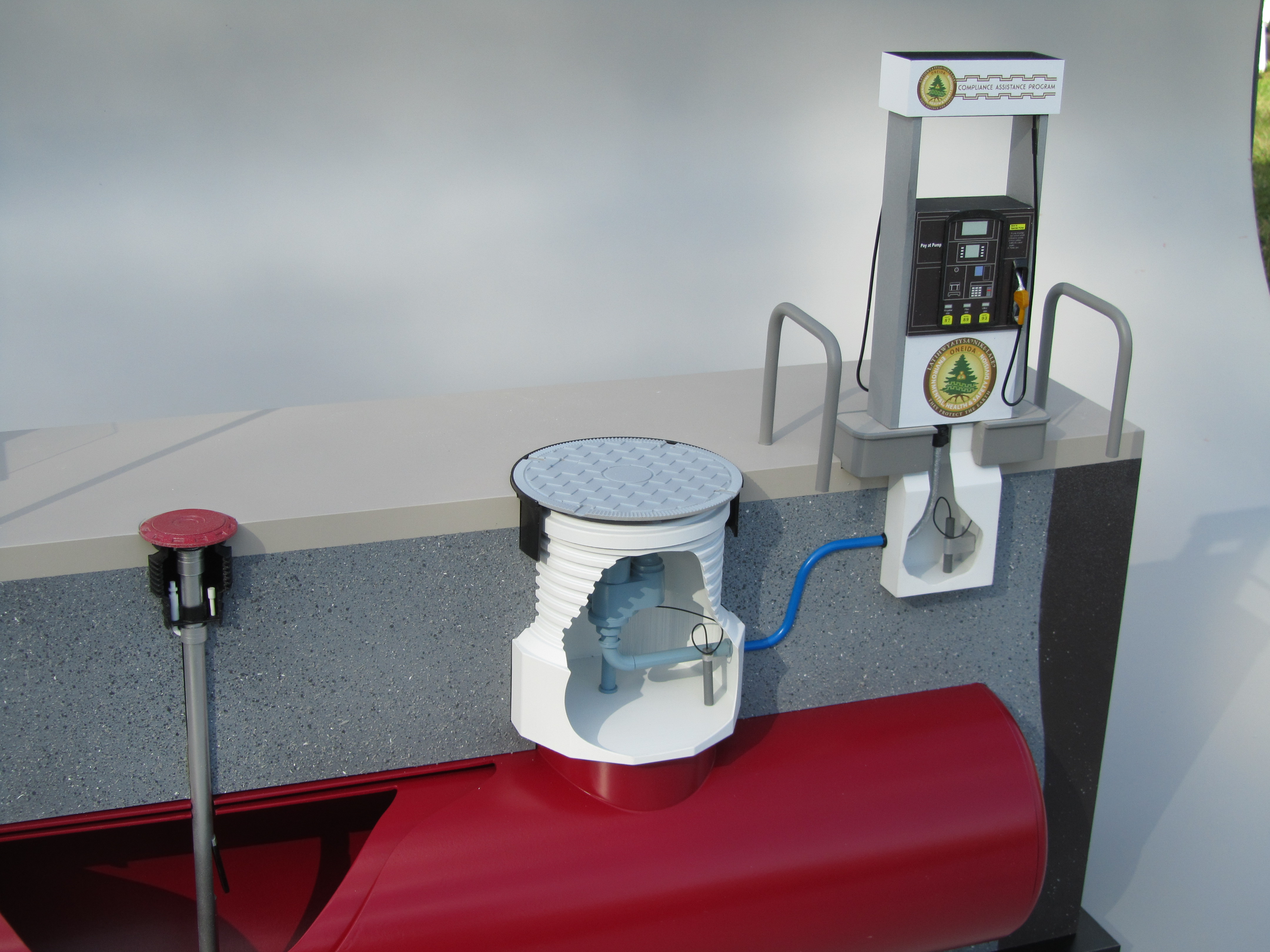 This underground storage tank cutaway model was commissioned for training purposes. It will help owners and operators understand the structure and parts of an underground fuel storage tank. It helps make sure they are staying in compliance with laws governing fuel storage.