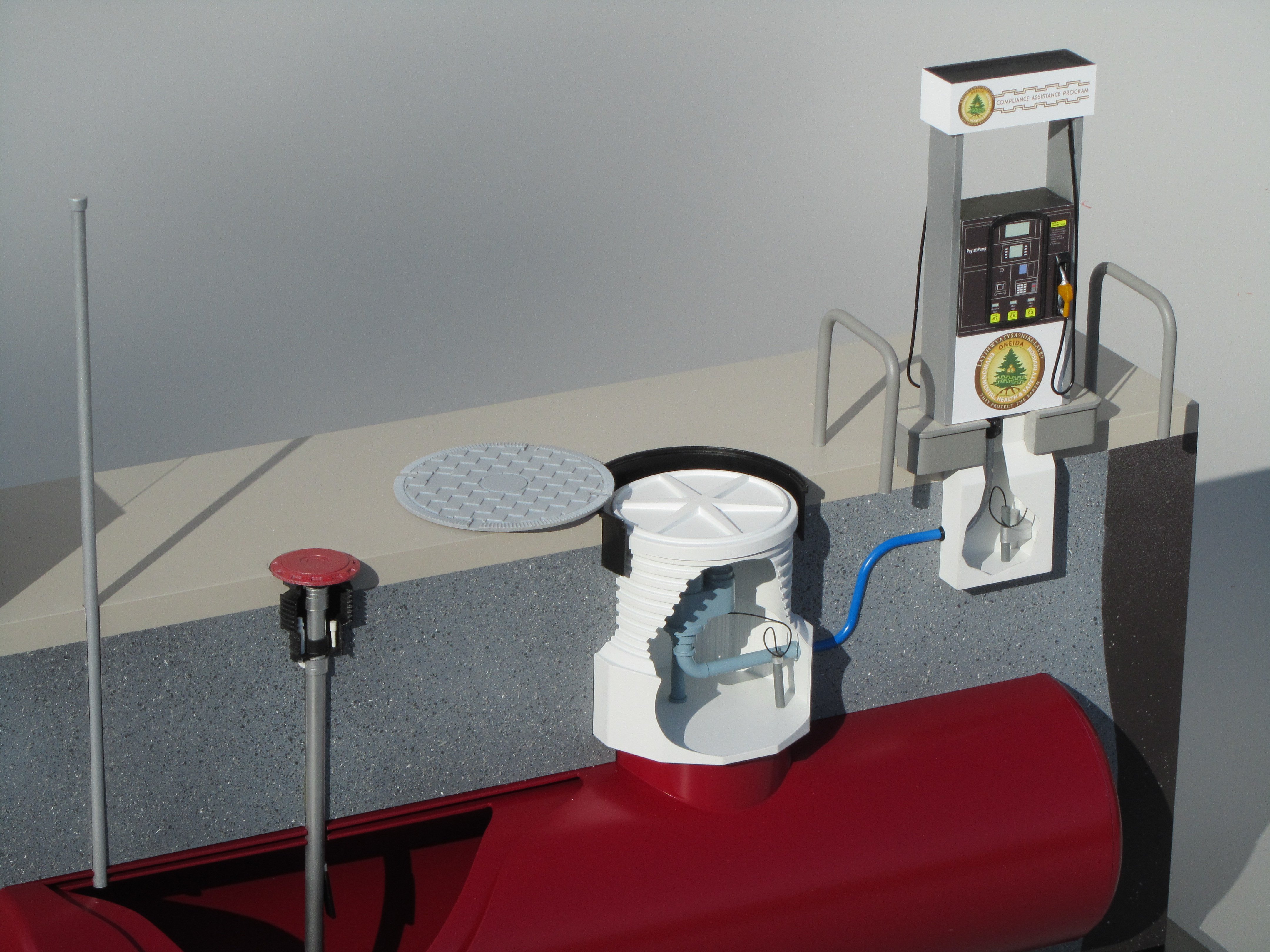 Our model makers used client supplied diagrams and actual photographs of gas station pumps to create the underground storage tank cutaway model.